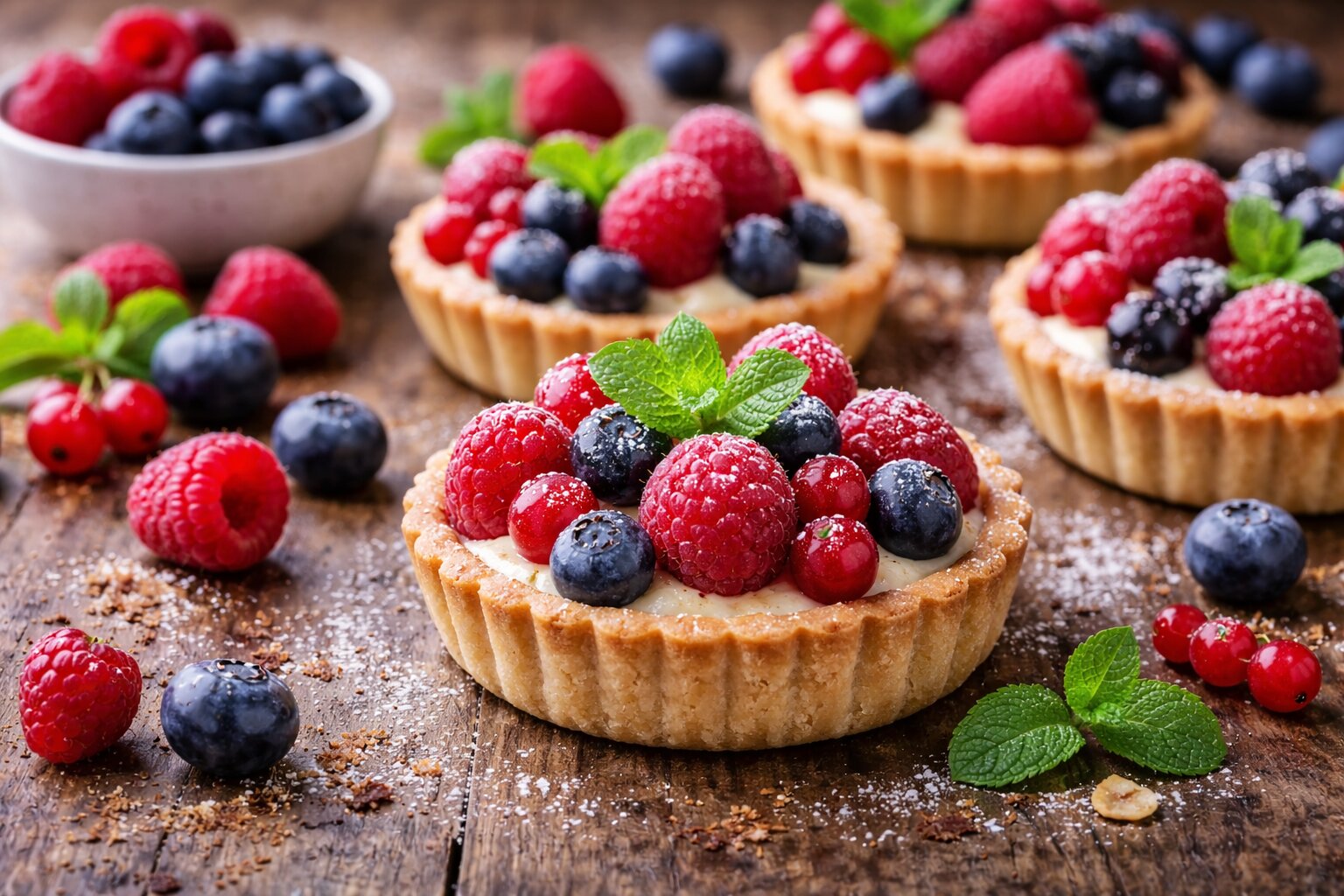 Delicada tartita elaborada con ingredientes naturales y frutos rojos frescos.